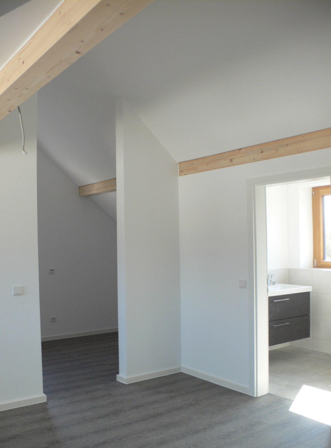 Das Obergeschoss bietet Platz für 2 Zimmer und einem großen Familienbad.