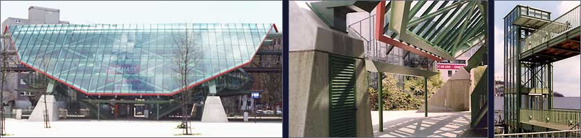 | Die Aufgabe ist einmalig - es gibt nur eine Schwebebahn auf der Welt-, die Funktion einfach, auf den ersten Blick: Menschen steigen ein und aus, das Warten spielt eine untergeordnete Rolle, denn die Schwebebahn kommt. Funktion und Konstruktion bestimmen den Charakter der Architektur. Der Stahl kann und muss gezeigt werden.  |